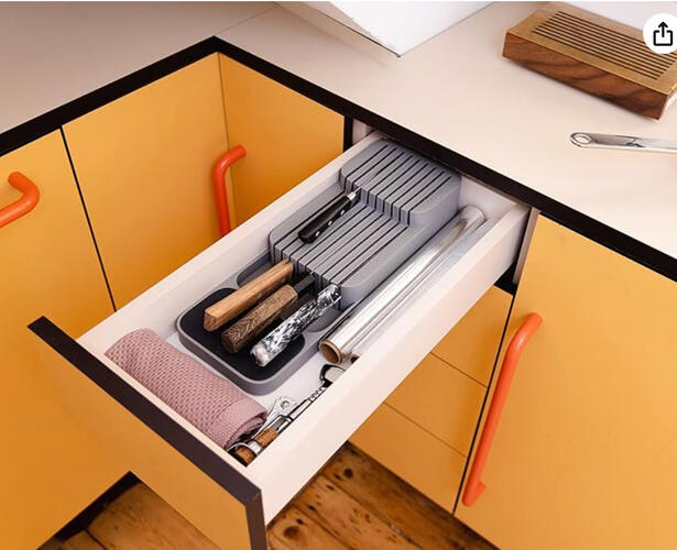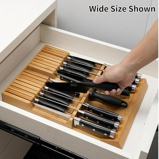 Stores knives safely inside drawers while freeing up counter space.