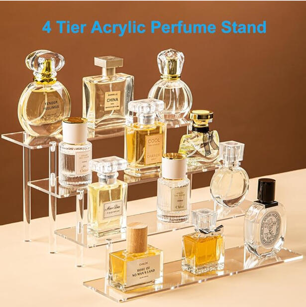 Displays fragrances in a structured layout while keeping countertops uncluttered.