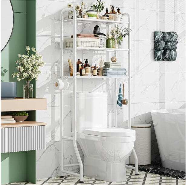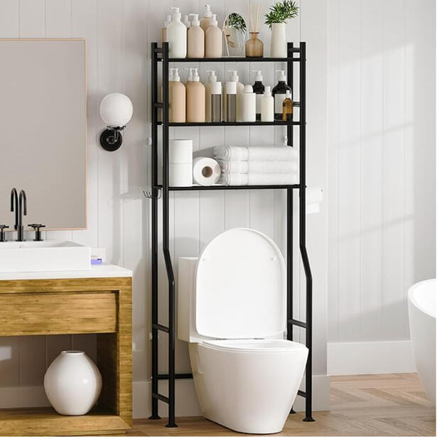 Adds flexible storage for towels and toiletries in small bathrooms.