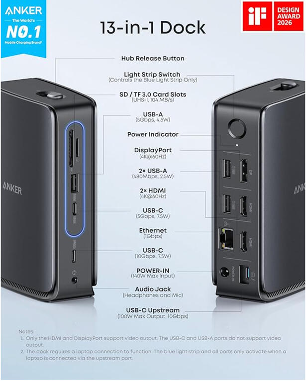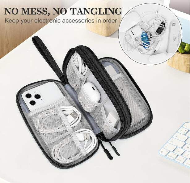Stores chargers and accessories compactly for both desk and on-the-go use.