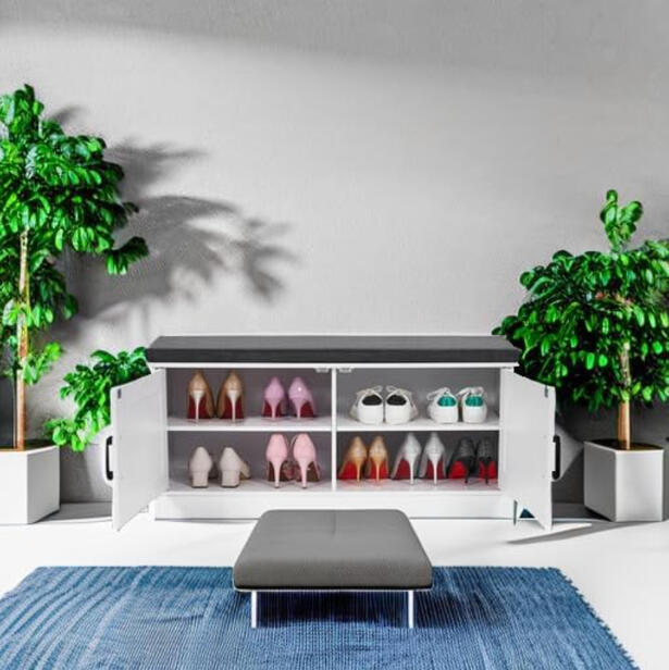 Keeps shoes hidden while maintaining a clean, uncluttered entryway.
