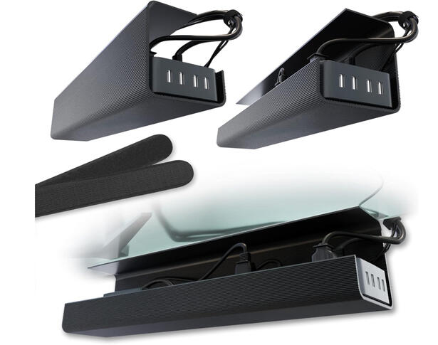 Prevents cables from falling and tangling, keeping your desk visually clean and efficient.