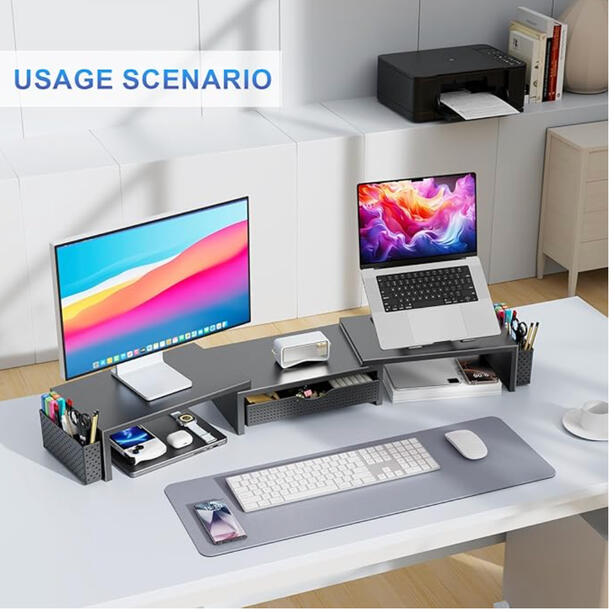 Elevates your screen while creating storage space for a cleaner, more functional desk.