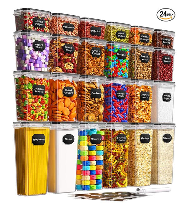 Creates uniform, stackable storage that keeps dry goods fresh while instantly upgrading pantry visibility.