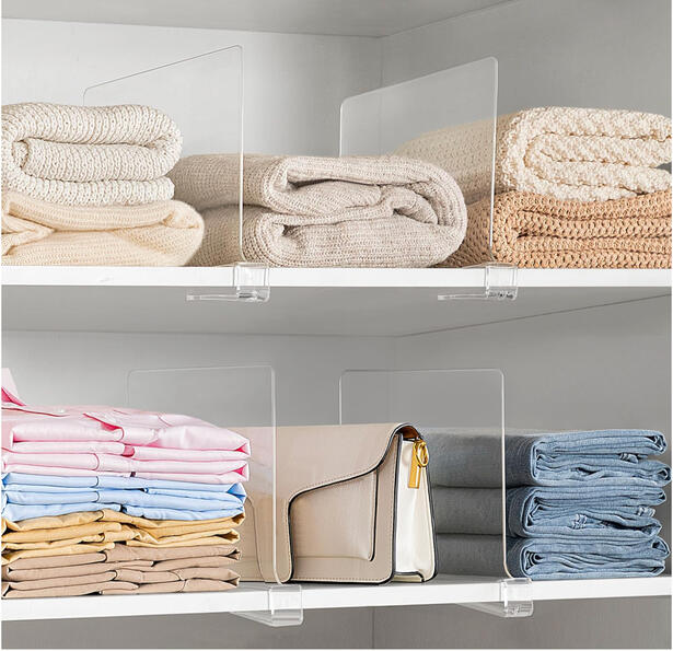 Prevents stacked towels from collapsing and keeps shelves tidy.