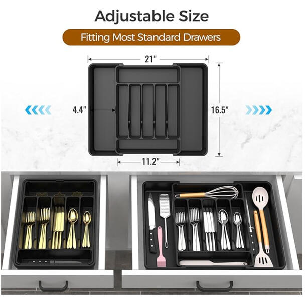 Separates utensils, gadgets, and tools to prevent cluttered kitchen drawers.