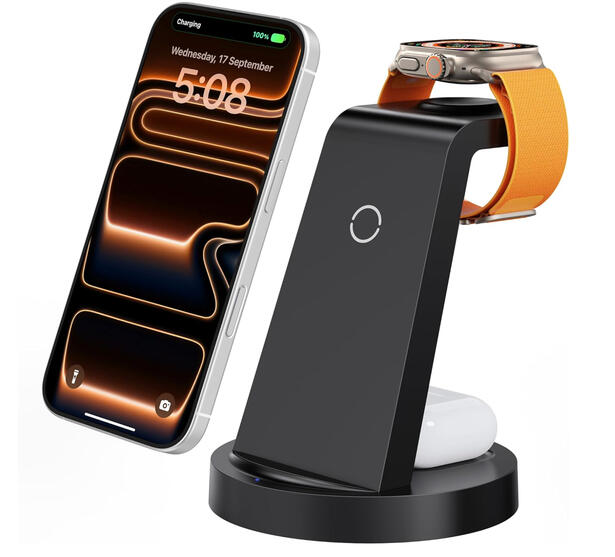Charges your phone, AirPods, and smartwatch in one place to reduce cable clutter and streamline daily charging.