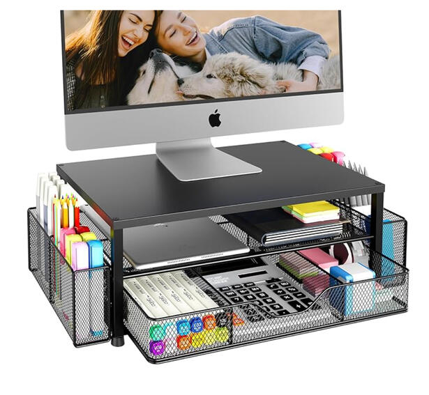 Raises your screen to eye level, reducing neck strain while freeing up desk space for a cleaner setup.