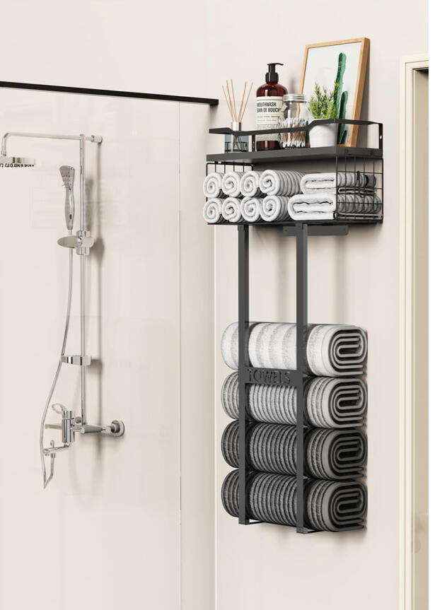 Adds flexible storage for towels and toiletries in small bathrooms.