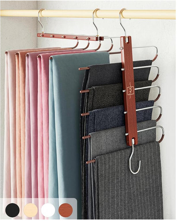 Maximizes hanging space while keeping clothing aligned and wrinkle-free.