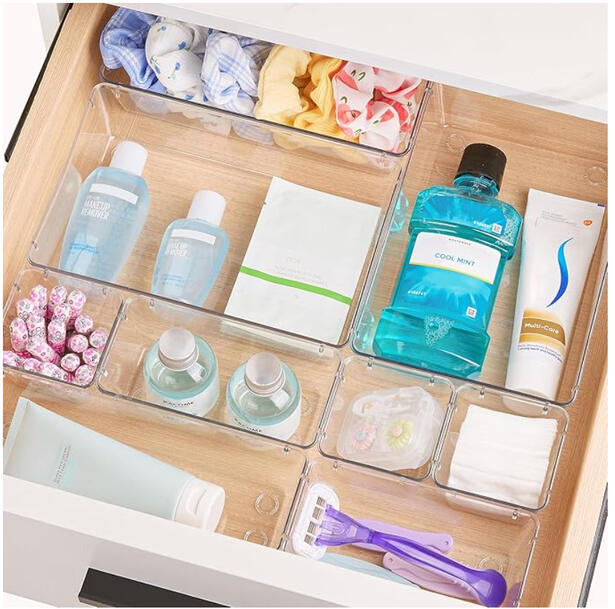 Separates essentials, hygenics, and small items for easy daily access.